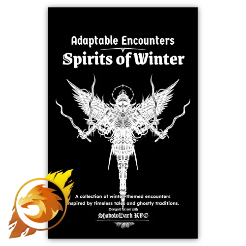 Adaptable Encounters: Spirits of Winter for Shadowdark is a collection of drop-in encounters built for winter festivals, haunted roads, frozen outskirts, and villages trying to endure the season. The focus is on folklore, eerie wonder, and tangible winter magic. Designed to play with Shadowdark RPG.